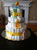 I have many great ideas for baby shower & house warming parties. Diaper (Towel) cakes, baby bassinet, (Diapers or fruits)baby carriage, sleeping baby, diaper flower vase and many more choices.